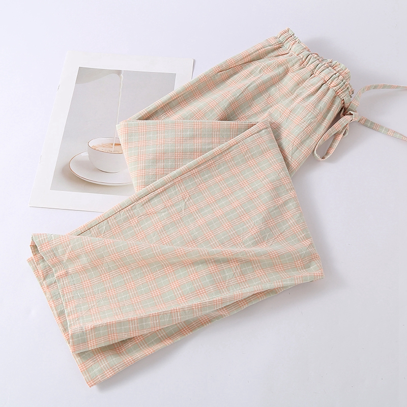 情侣睡裤男女春秋季纯棉水洗棉布夏季薄款简约格子直筒家居裤长裤