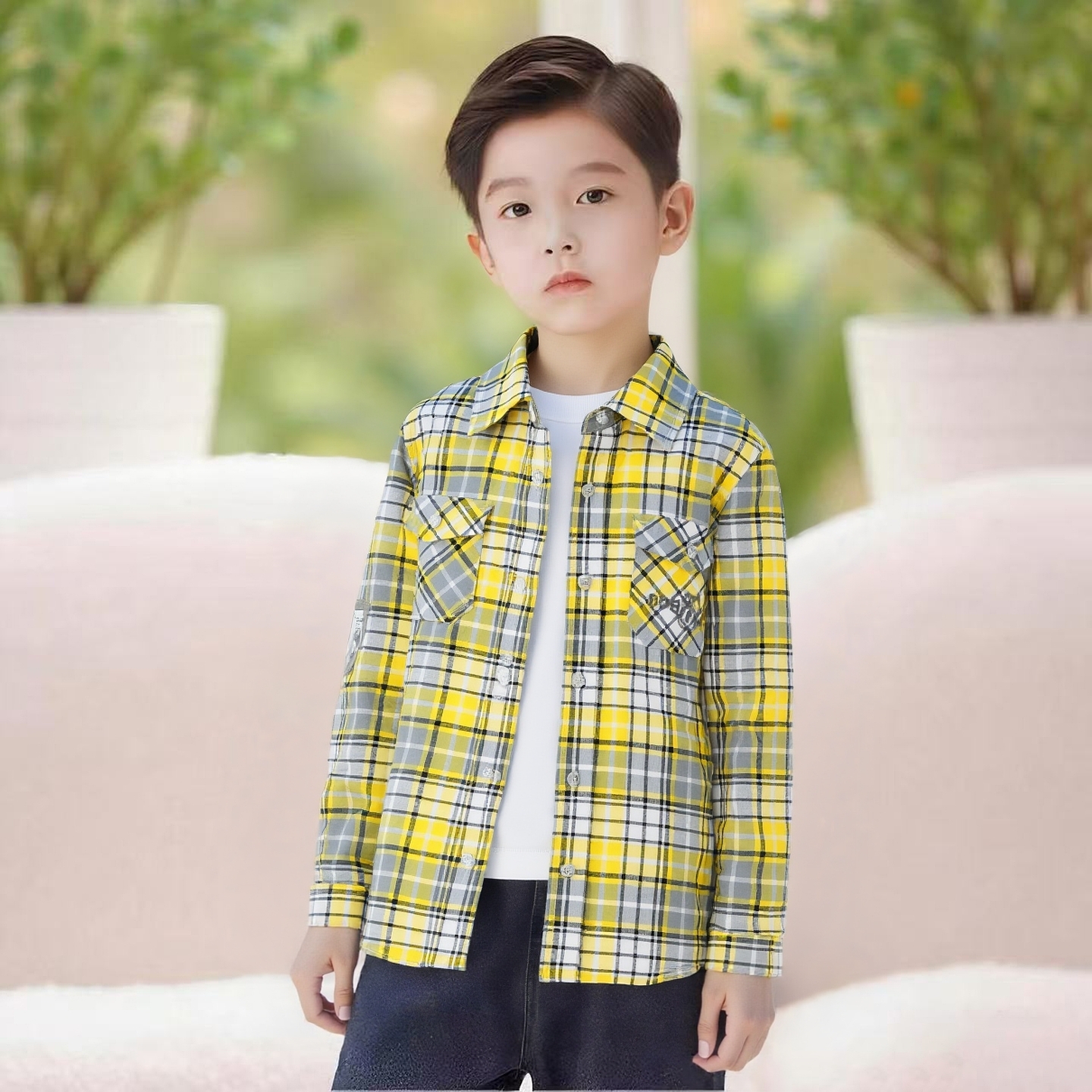 正品童装儿童衬衫长袖正品纯棉中厚中大童衬衣男孩格子休闲格子