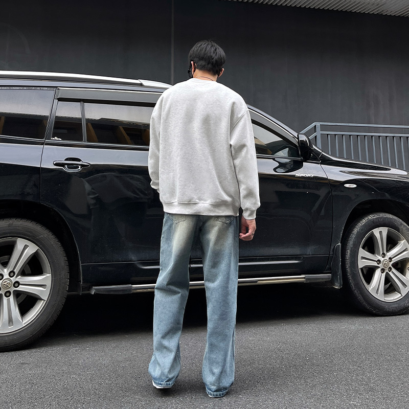 DAL 美式cleanfit浅蓝色磨白牛仔裤男复古水洗垂感宽松阔腿直筒裤