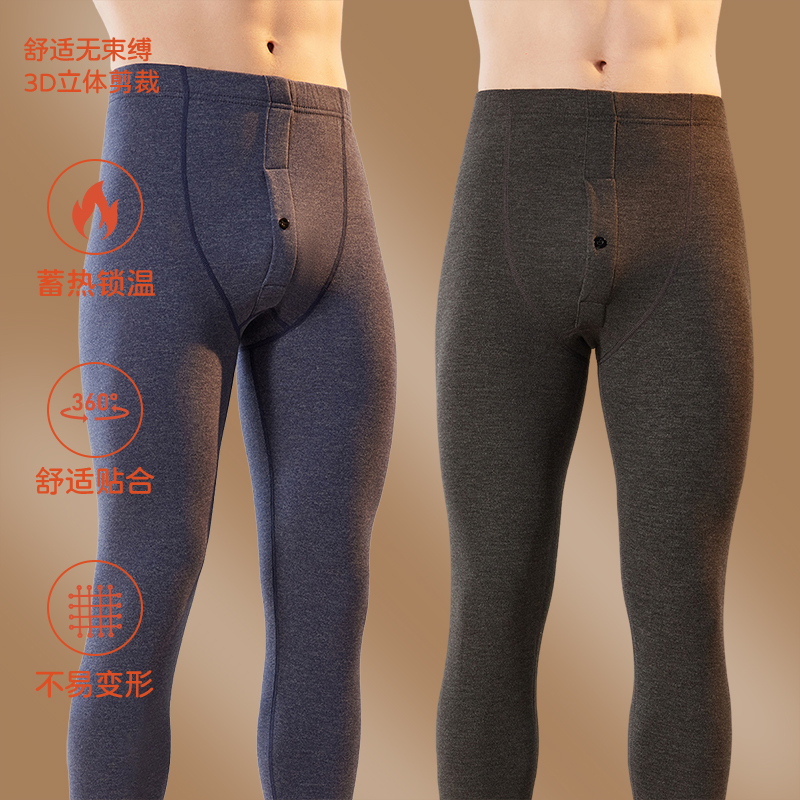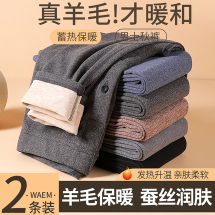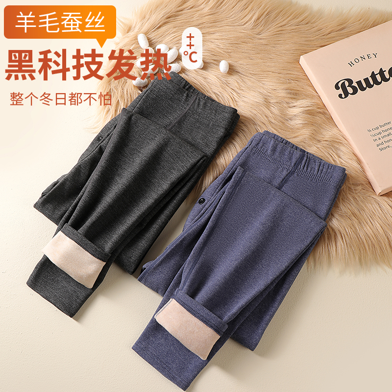 羊毛蚕丝男士秋裤无痕发热保暖裤子加厚加绒德打底棉毛裤内穿线裤