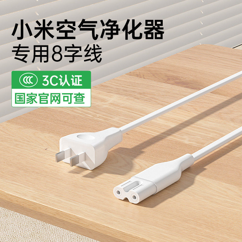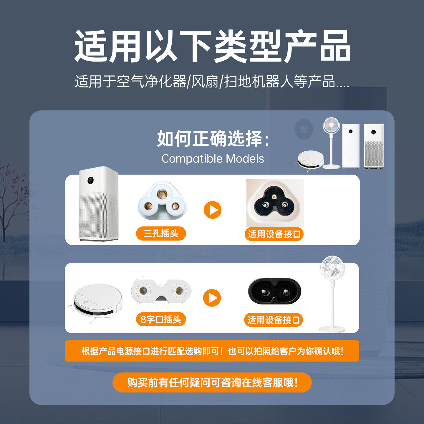 适用小米空气净化器电源线梅花线八字线米家风扇连接线1代2代1S2S两孔插头三孔电源适配器通用供电线
