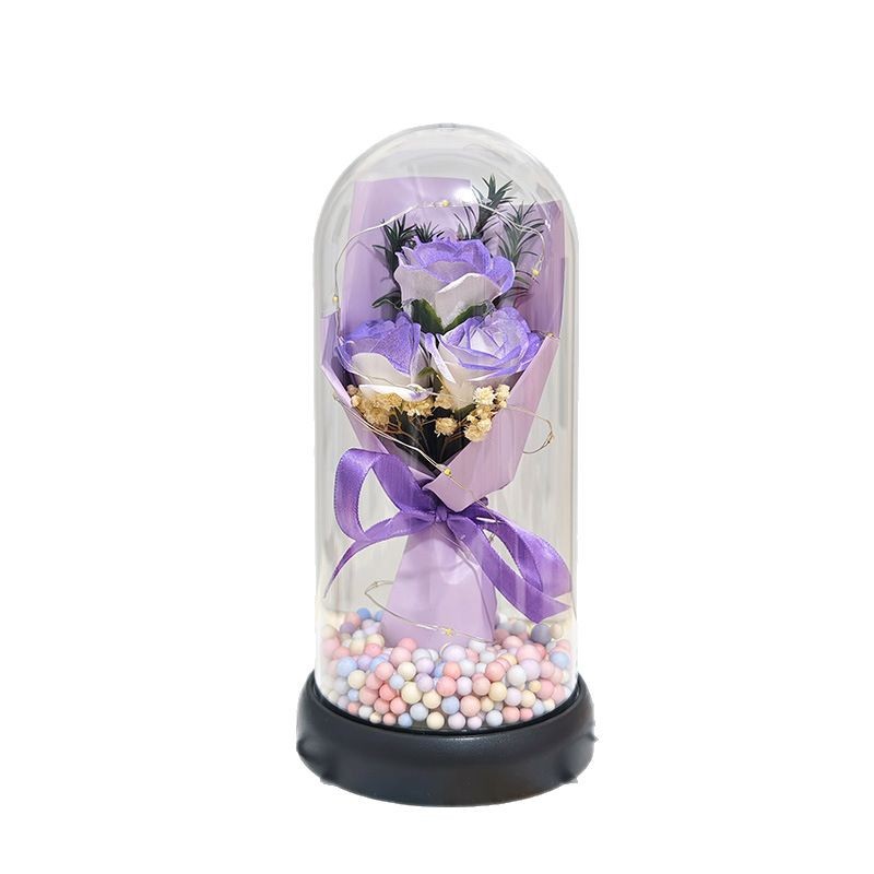 母亲节情人节礼物玫瑰花康乃馨郁金香香皂玻璃罩灯成品花束永生花