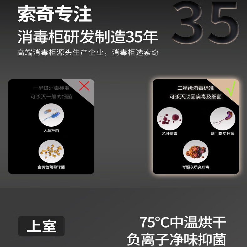 新款索奇消毒柜200BS1家用商用红外线高温消毒二星级