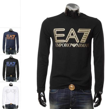 Armani/阿玛尼EA7 男士烫金鹰标长袖T恤休闲打底衫 3DPT38 PJMUZ