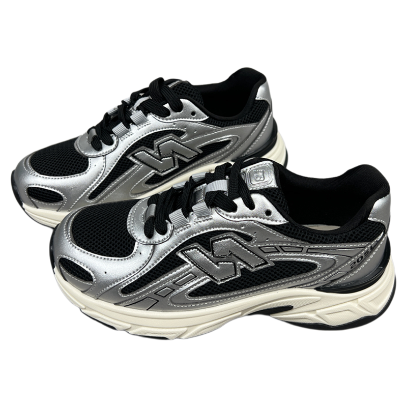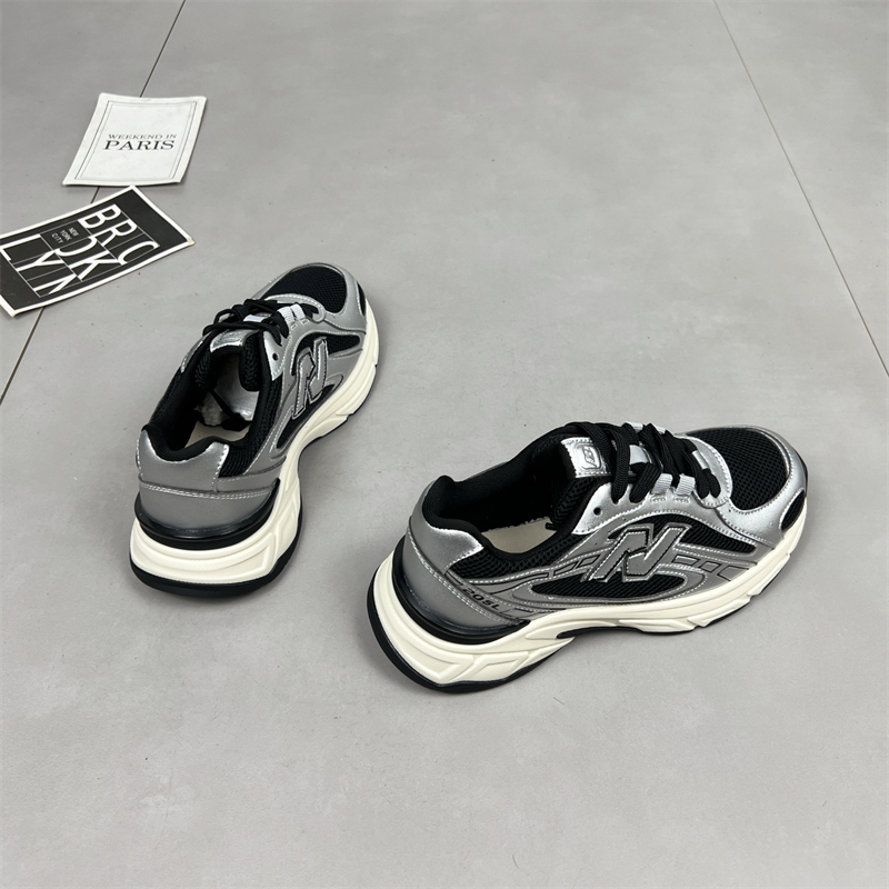 真皮复古厚底老爹鞋女2025新款秋季网面透气舒适休闲运动跑步鞋