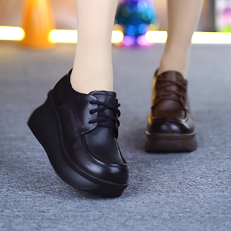 真皮厚底单鞋女秋冬新款头层牛皮英伦风坡跟复古松糕底小个子女鞋