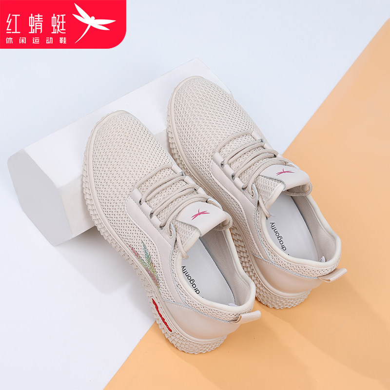红蜻蜓女鞋妈妈夏季新款透气飞织网面运动鞋轻便女士跑步旅游鞋女
