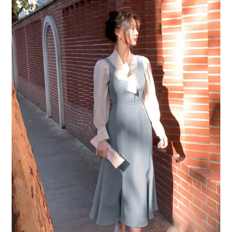 2025秋季新款法式少女气质甜美中长款鱼尾背心修身连衣裙D3533