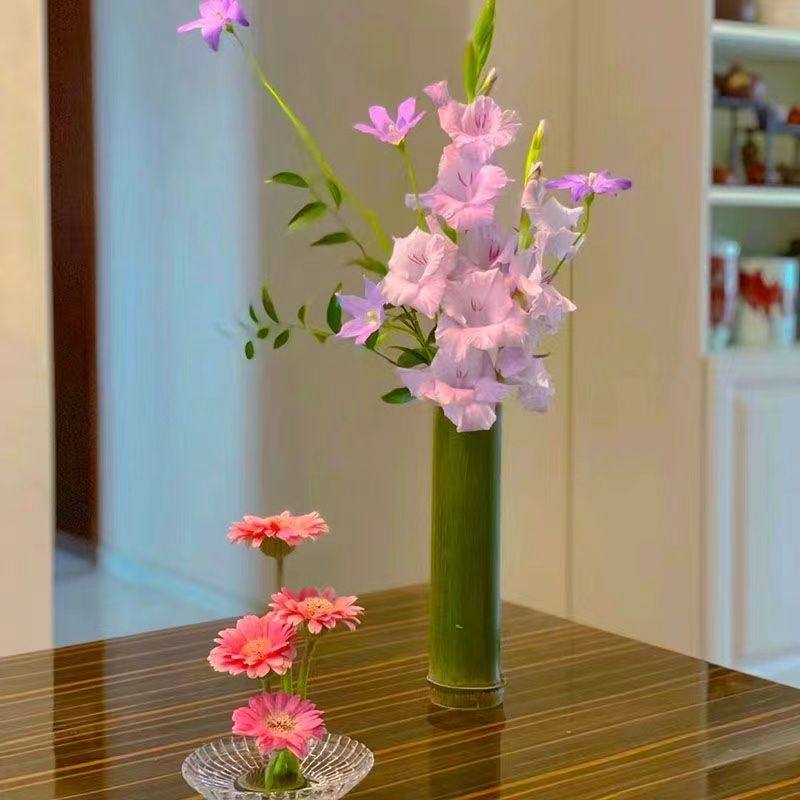 竹筒插花瓶摆件新鲜绿色竹管小竹子花艺竹节环创婚庆摆件竹筒花器