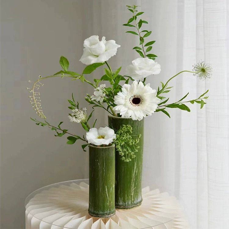 竹筒插花瓶摆件新鲜绿色