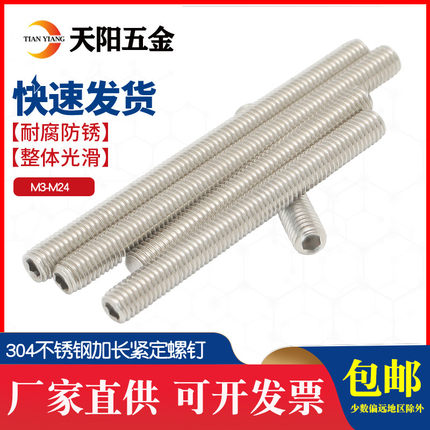 加长紧定螺钉304不锈钢平端内六角机米螺丝无头顶丝M3M4M5M6M8M24