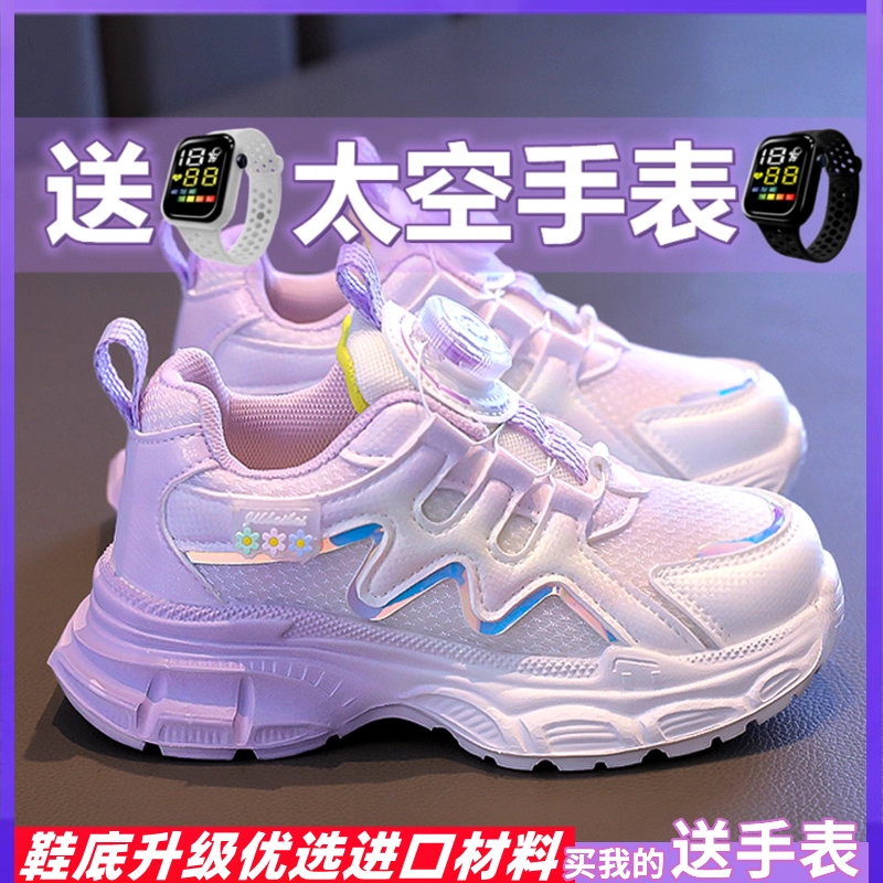 乔丹格兰女童运动鞋2025秋季新款女孩跑步鞋网面儿童鞋皮面防水潮