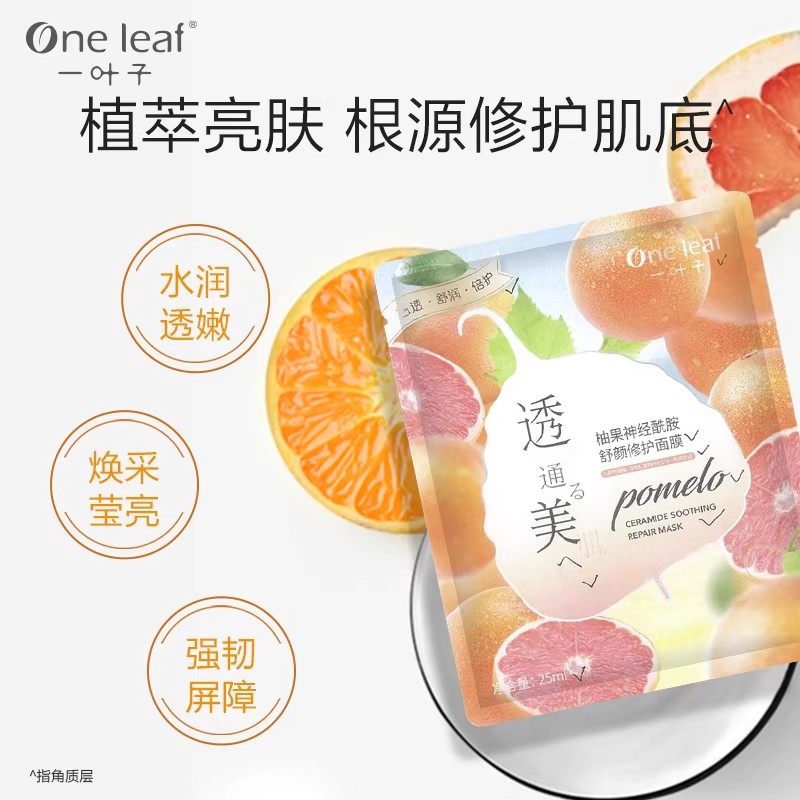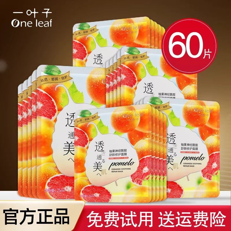 一叶子柚果舒颜修护面膜补水保湿舒缓提亮平价学生女正品
