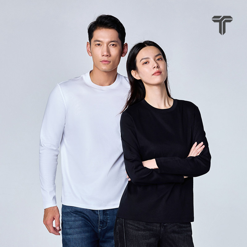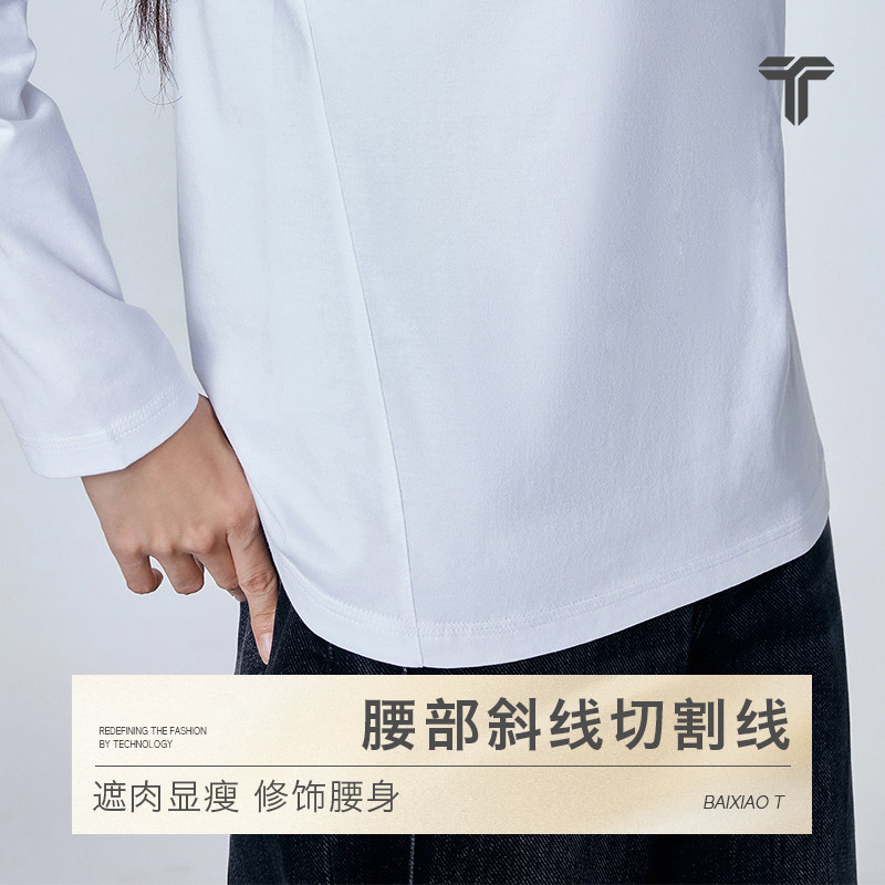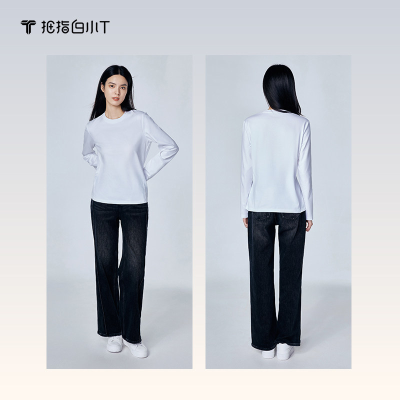 【热销】拇指白小T2025秋季纯棉圆领长袖T恤男女生内搭上衣体恤衫
