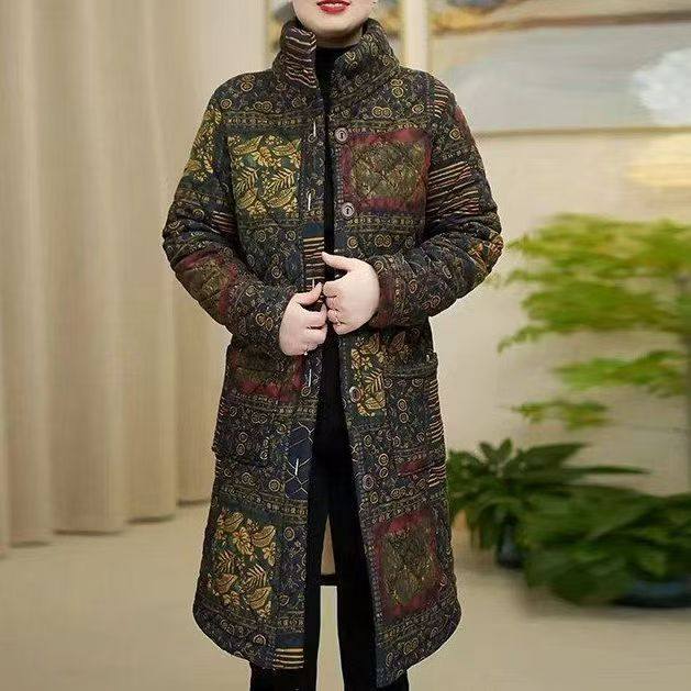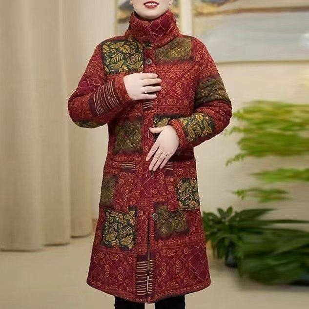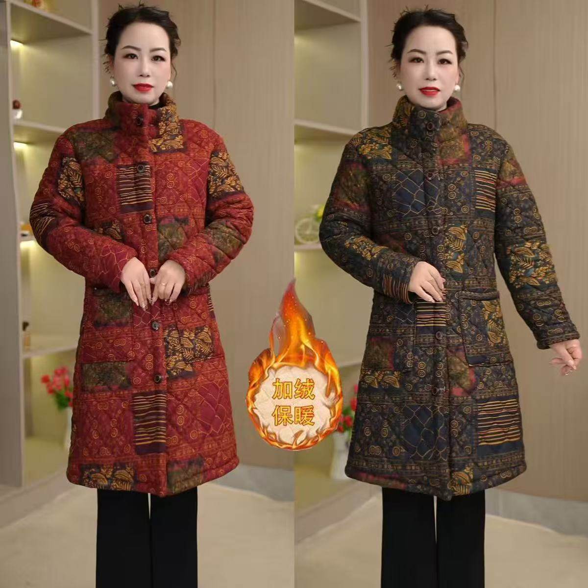 妈妈冬季新款洋气显瘦中长款保暖棉衣外套中老年大码加绒加厚棉袄