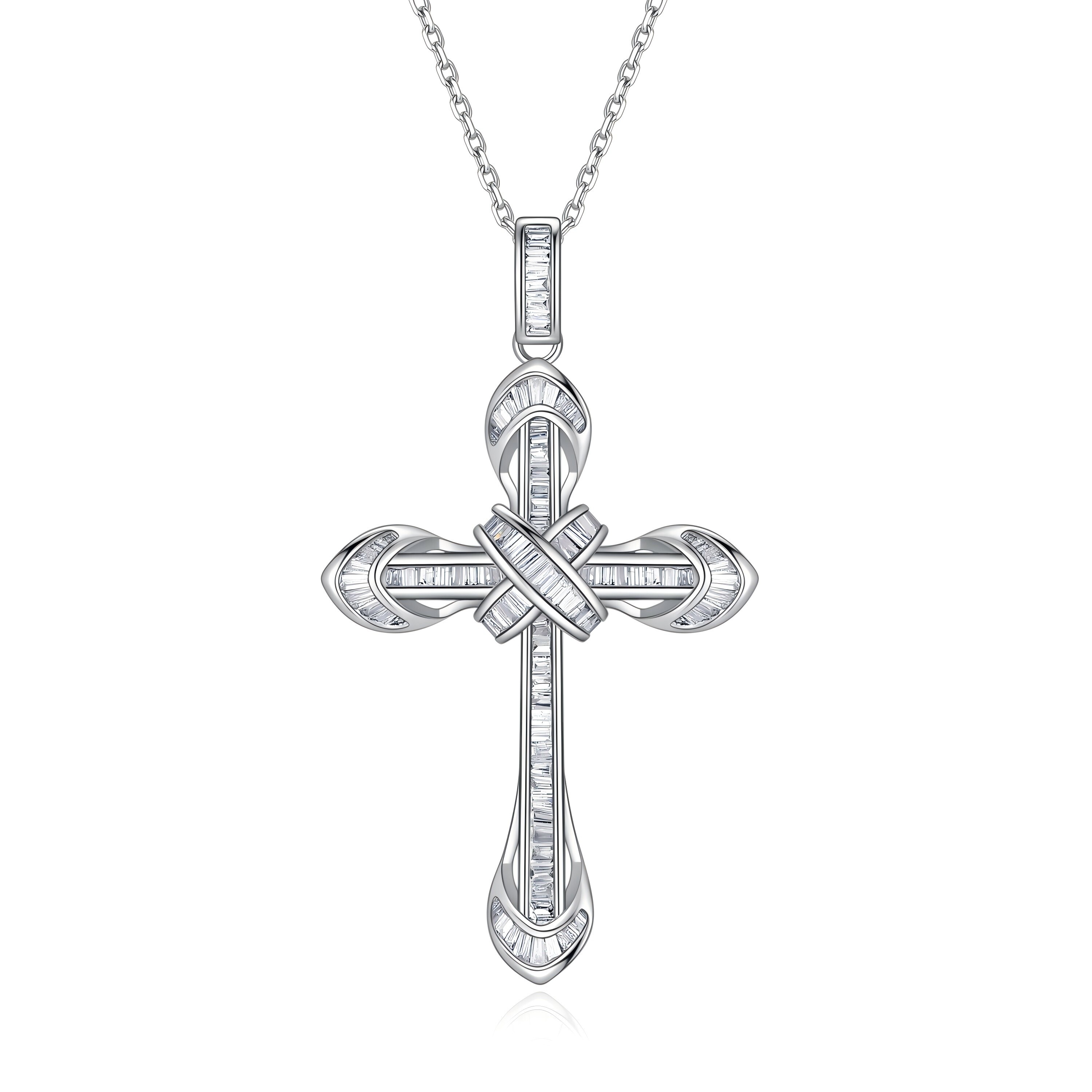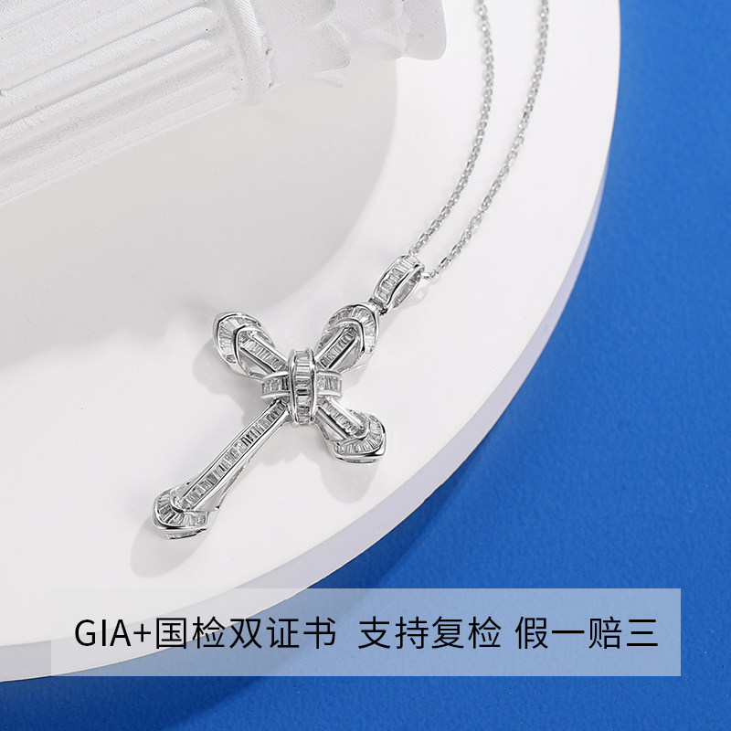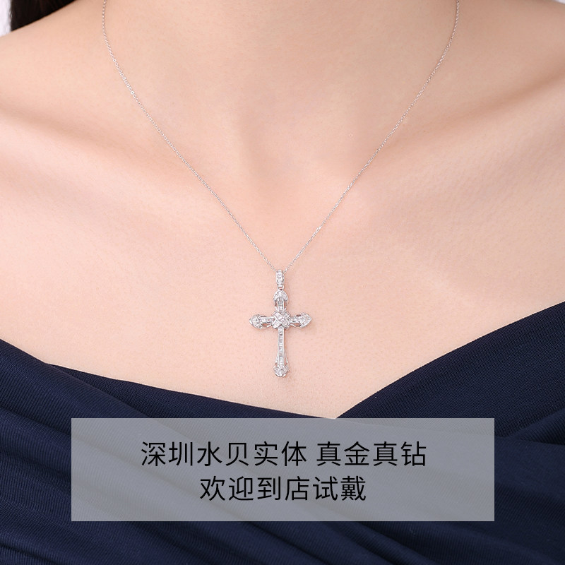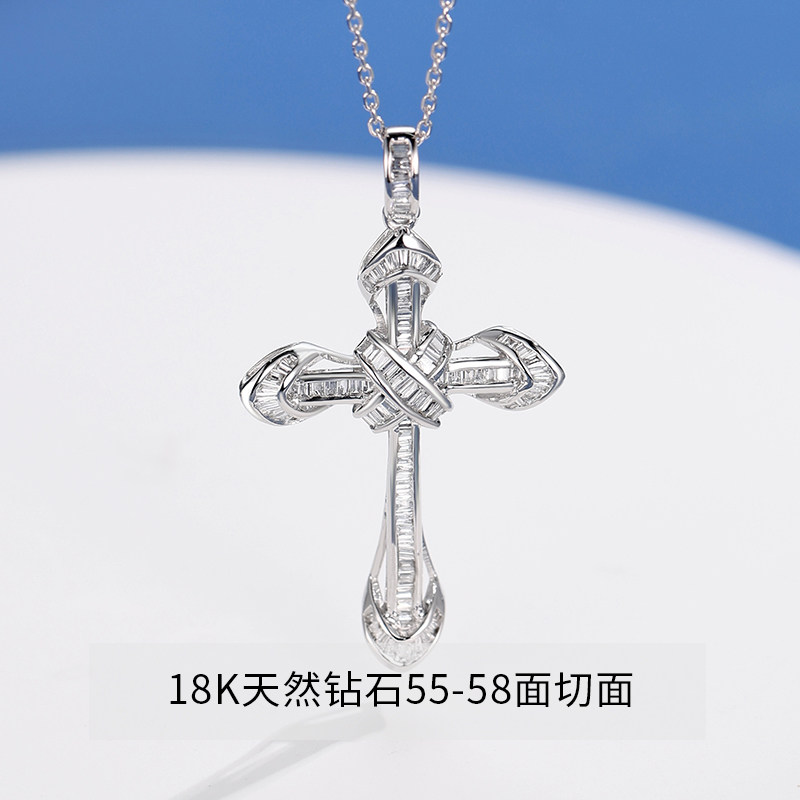 18K金天然真钻石项链女十字架吊坠满钻T方钻锁骨链轻奢情人节礼物
