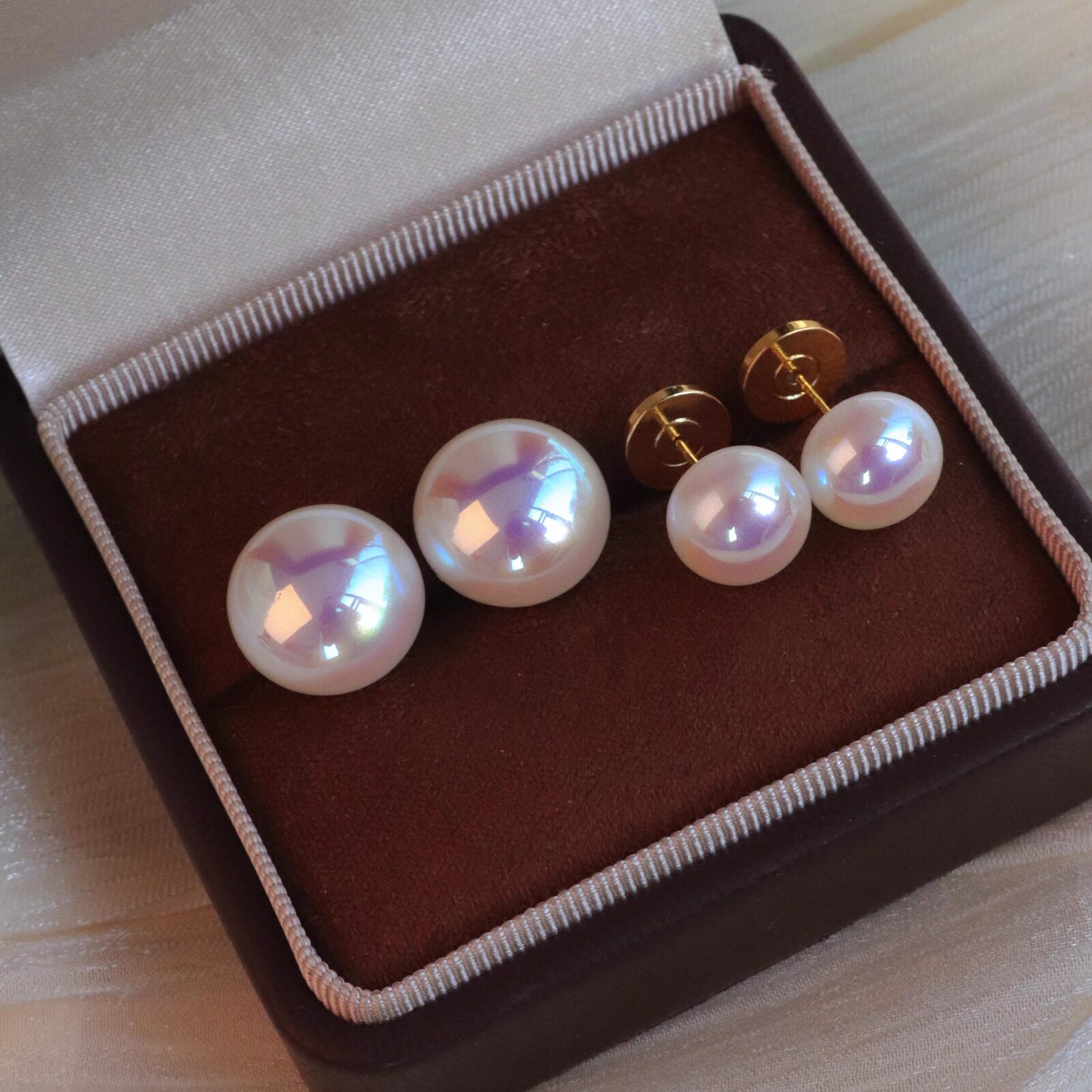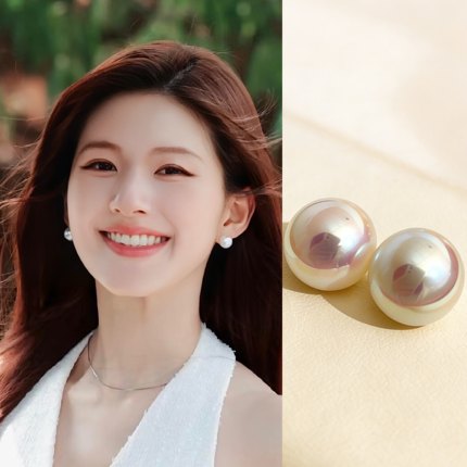 【情人节礼物】海水天女人造馒头珍珠樱粉925银耳钉女轻奢耳饰女