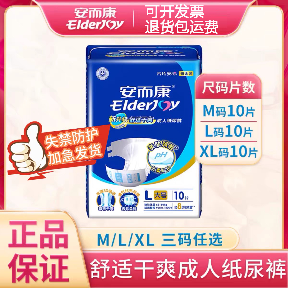 整箱安而康舒适干爽成人纸尿裤老年人用尿不湿护垫男女M/L/XL码