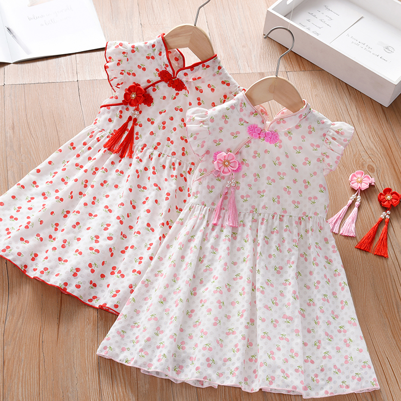 女童夏季旗袍连衣裙2023夏装短袖复古公主裙宝宝纯棉中国风裙子潮