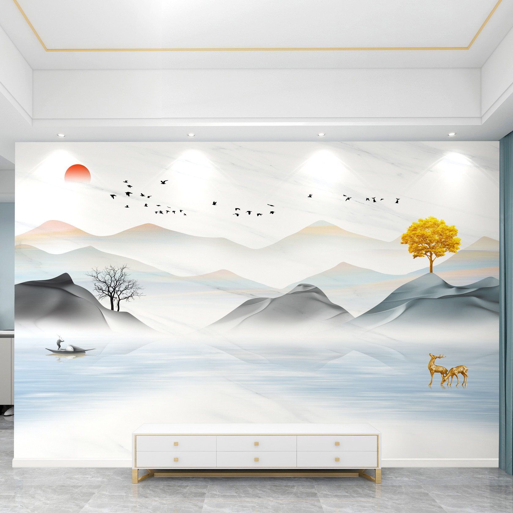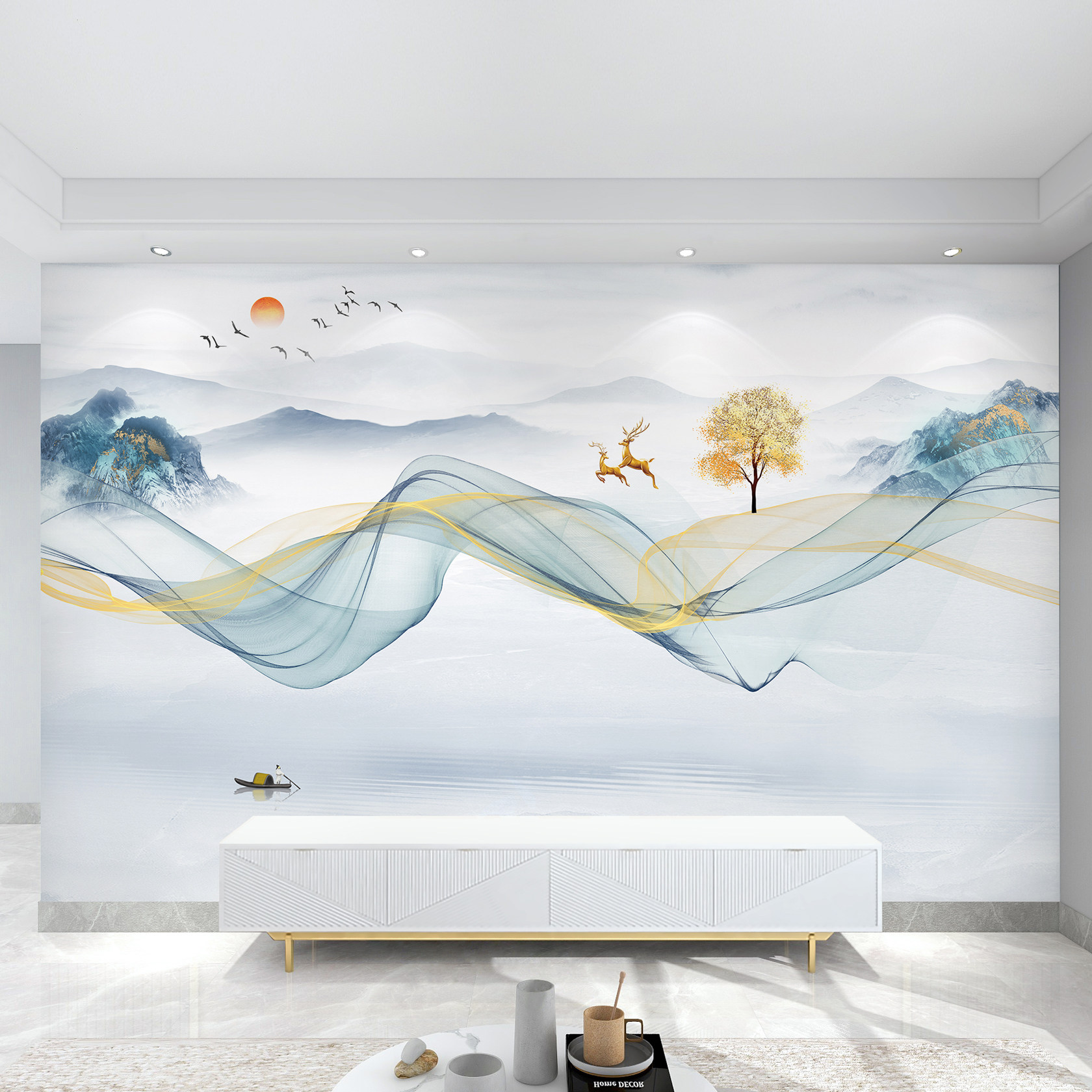 新款电视背景墙壁画【可上门贴】