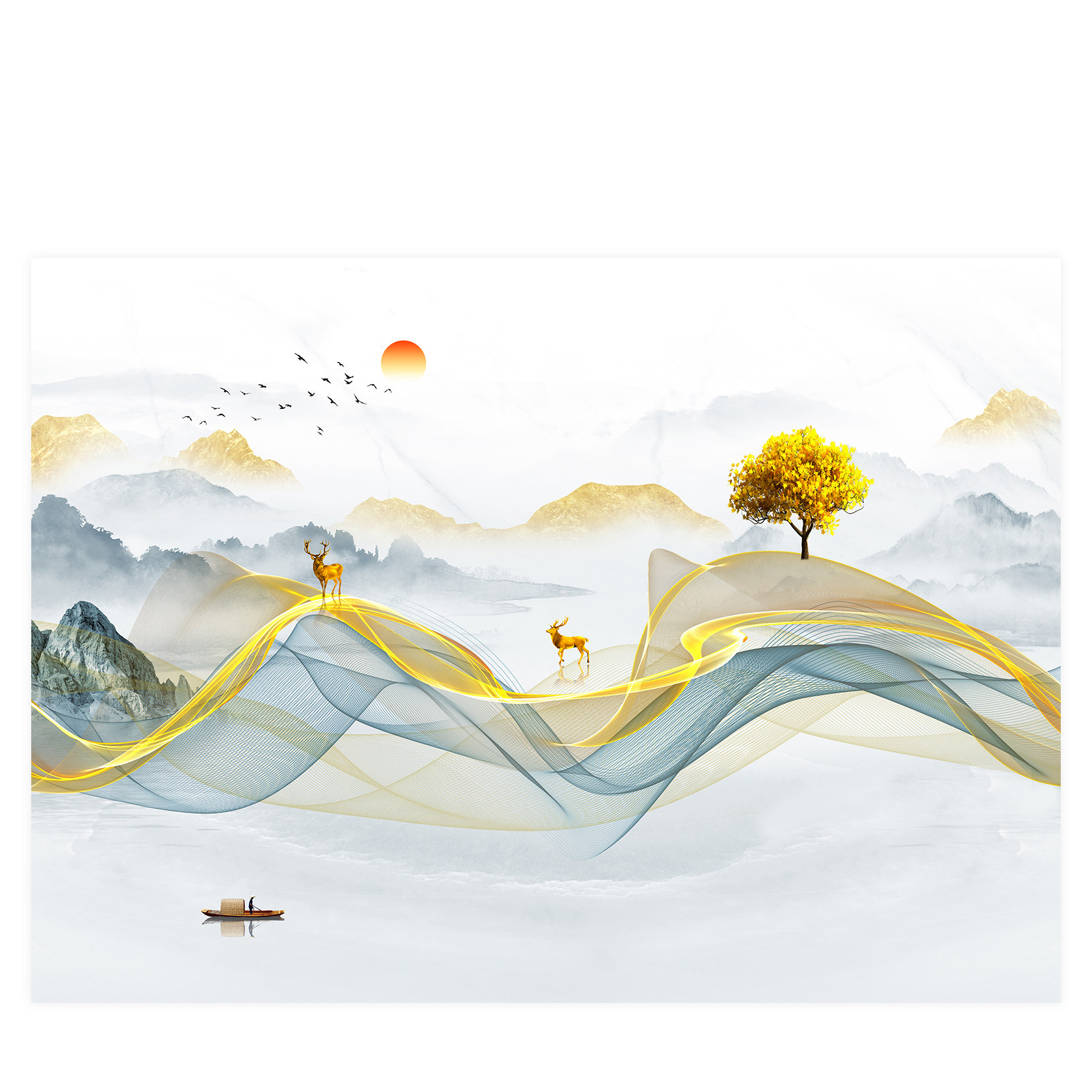 电视背景墙壁纸高端大气立体山水壁画无缝壁布客厅沙发影视墙布
