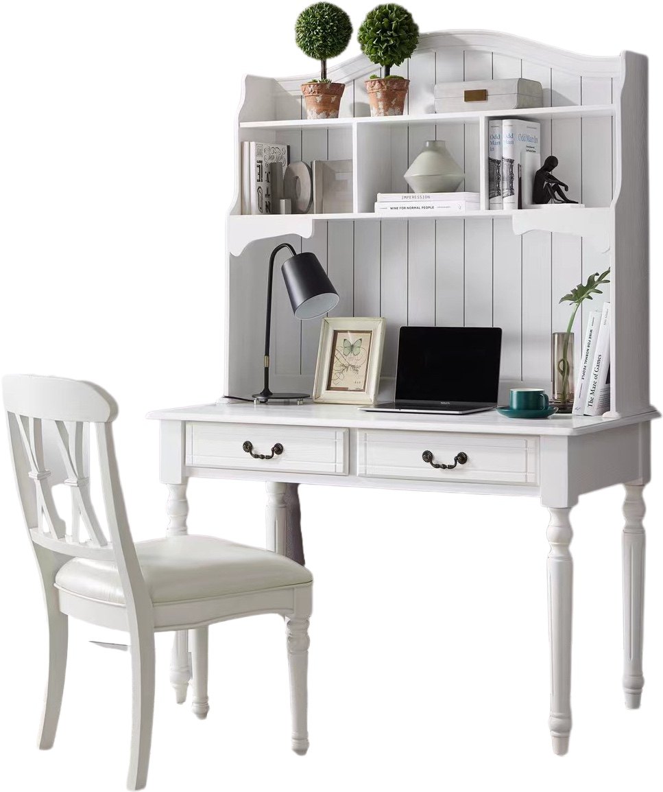 美式实木书桌组合家用书柜一体桌卧室电脑桌儿童轻奢写字台经济型