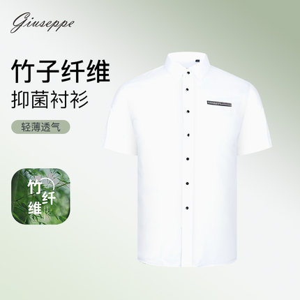 【竹纤维】乔治白夏季男士短袖衬衫白色尖领休闲韩版修身上衣