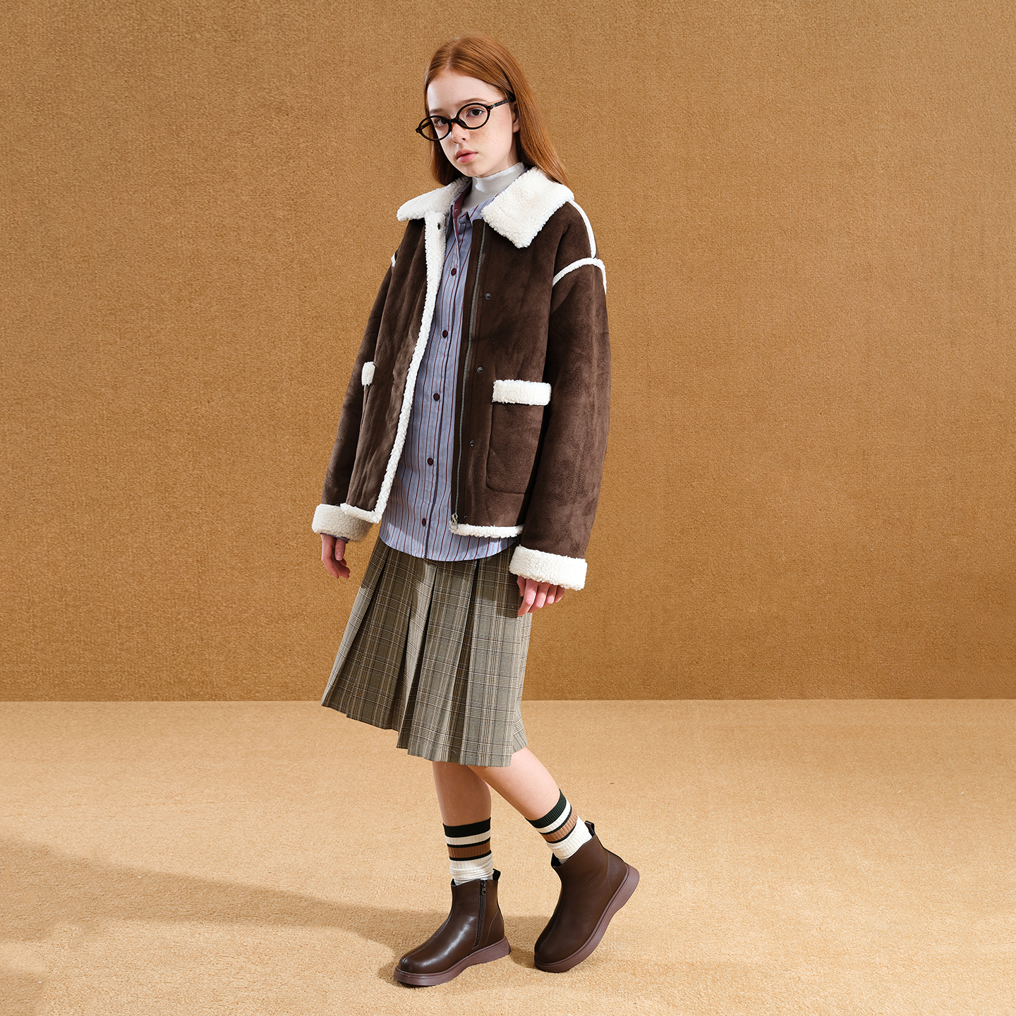 红蜻蜓女童鞋冬季新款切尔西靴儿童皮靴加绒保暖二棉短靴子单里靴