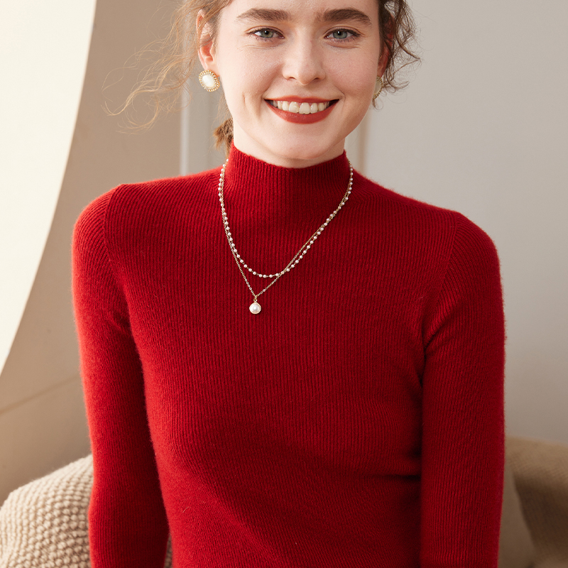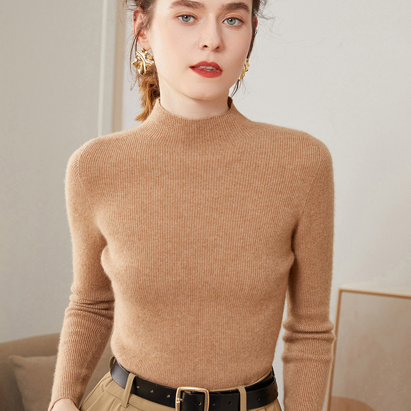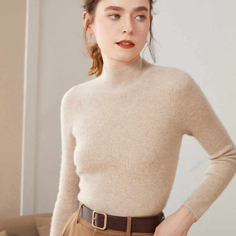 一线成衣无缝软糯感山羊绒衫女半高领抽条修身毛衣针织打底衫上衣