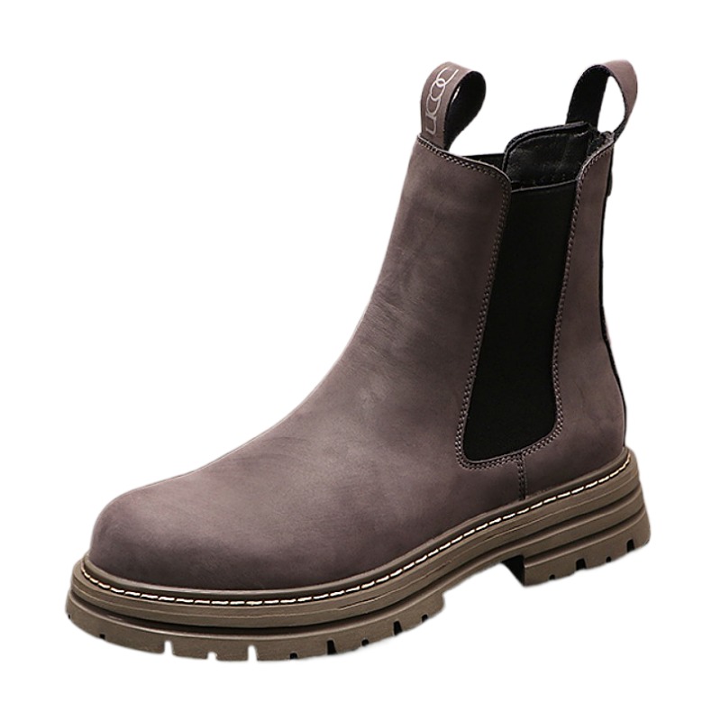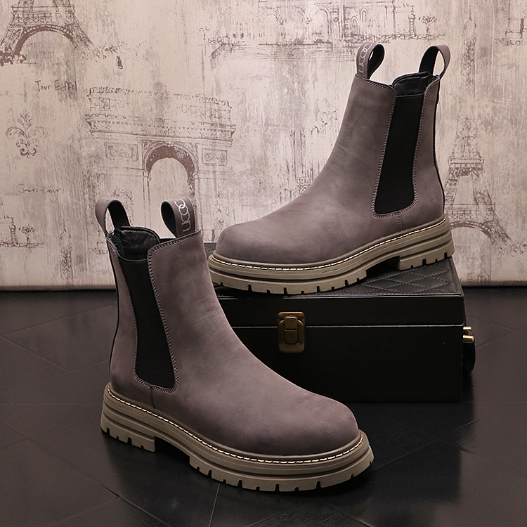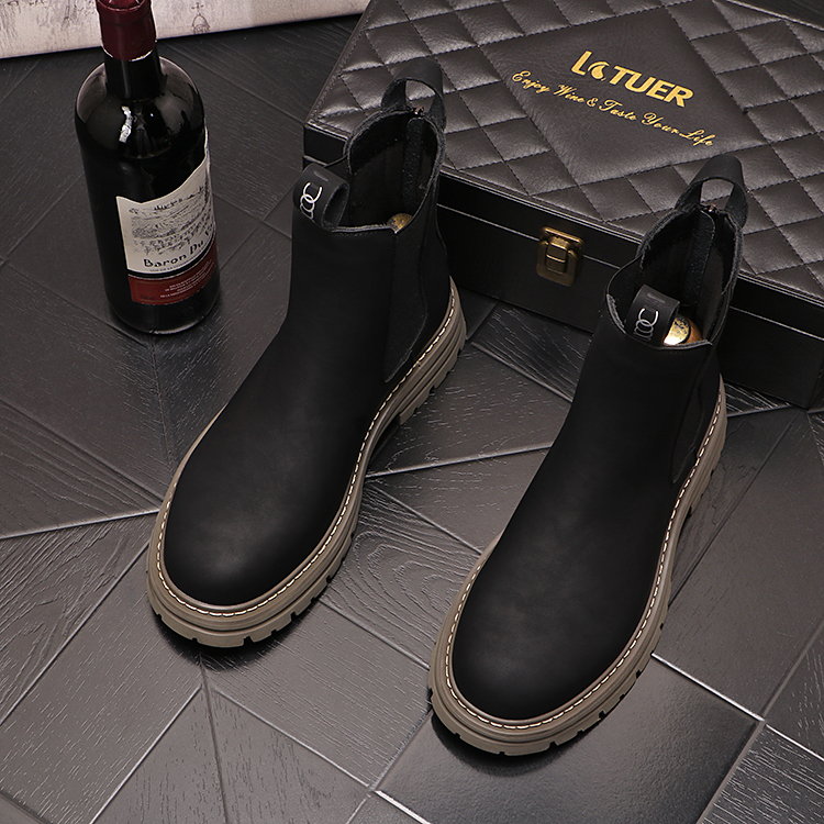 切尔西男鞋子春秋新款休闲短靴厚底增高套筒短靴英伦风中邦马丁靴