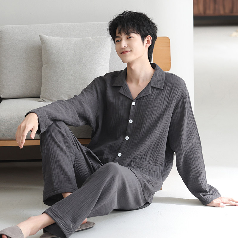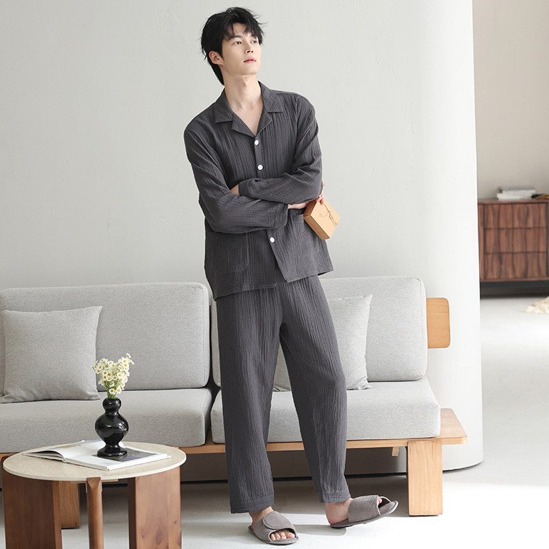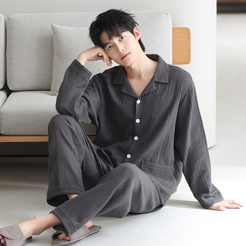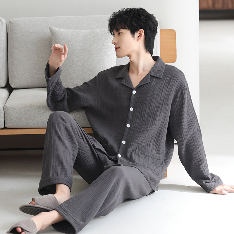 猫人纯棉男士睡衣春秋款长袖2025款宽松大码可外穿家居服开衫套装