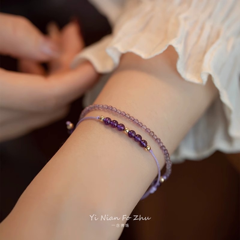 天然紫水晶上岸幸运金珠小众设计礼物14k轻奢叠戴手链女礼物