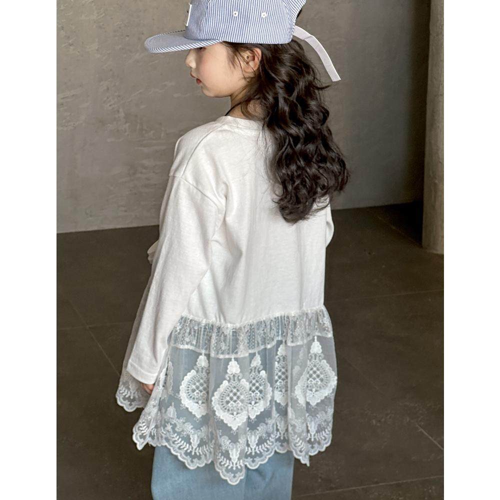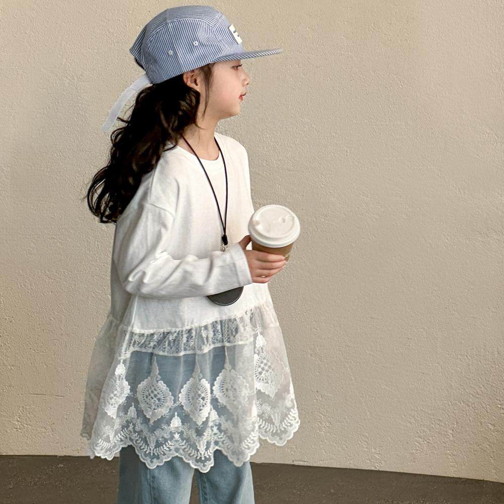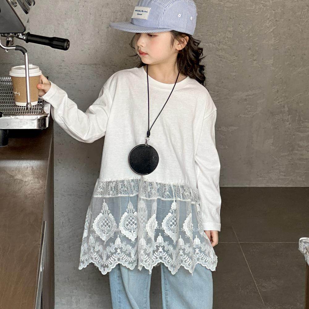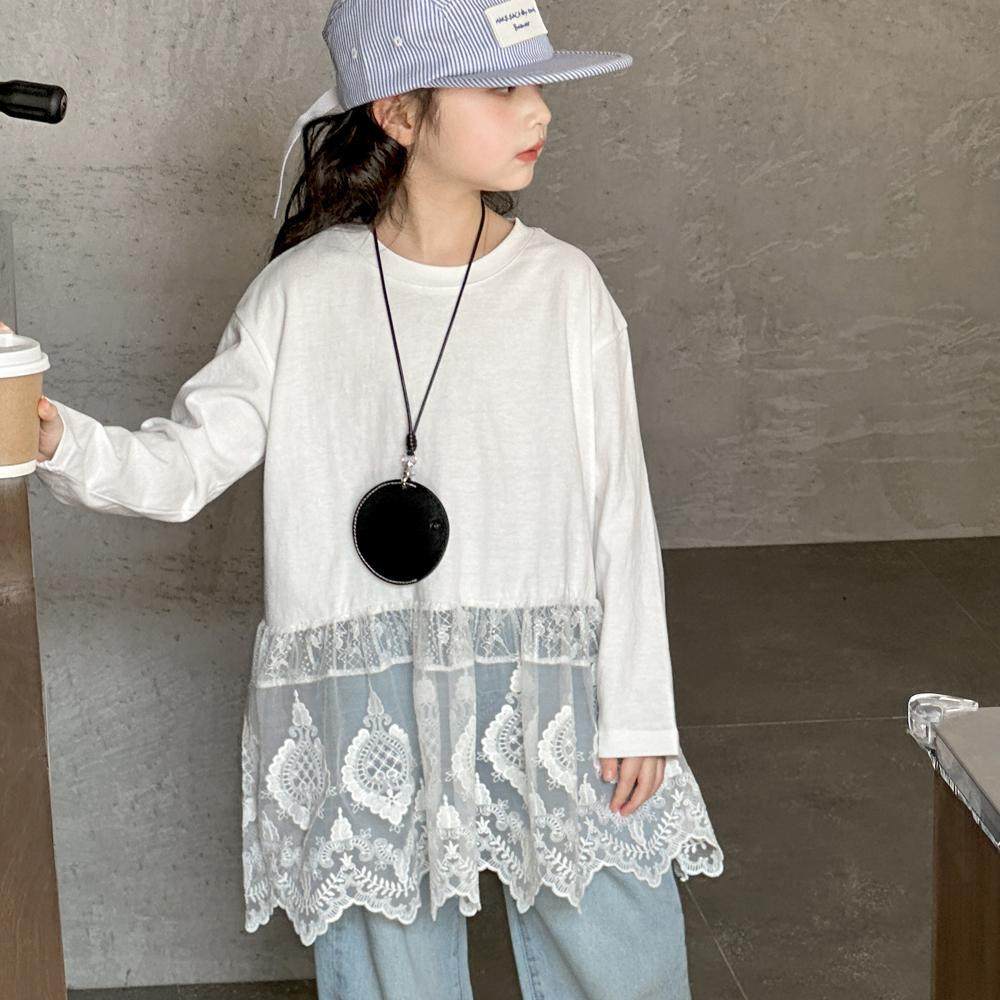 女童长袖T恤春秋款2026新款儿童装韩版蕾丝拼接打底衫女大童上衣