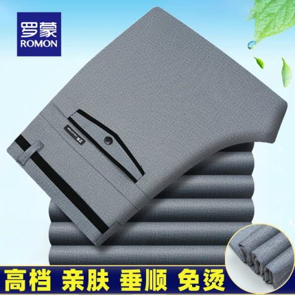 罗蒙中年男裤直筒弹力免烫裤子2025夏季薄款爸爸商务纯色休闲裤男