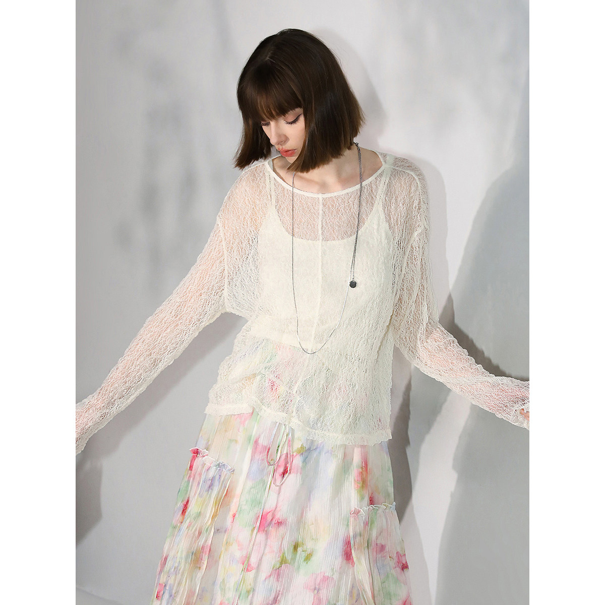 【3件5折】COCOBELLA精致镂空微透视针织衫打底蕾丝罩衫TS0021