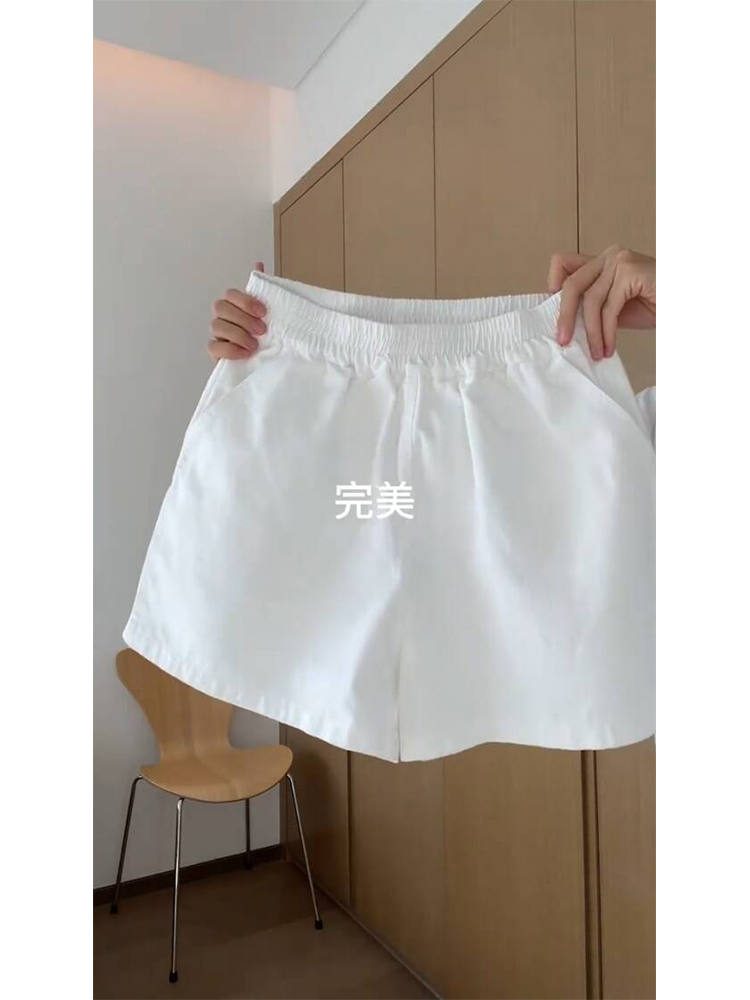 美式复古白色高腰a字阔腿短裤女春夏2024新款爆款显瘦休闲运动裤