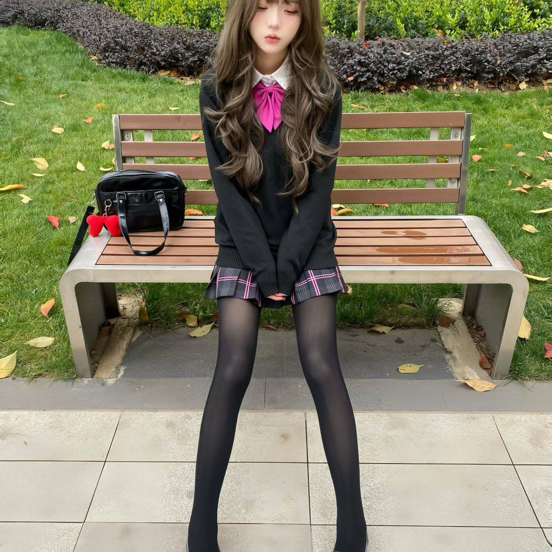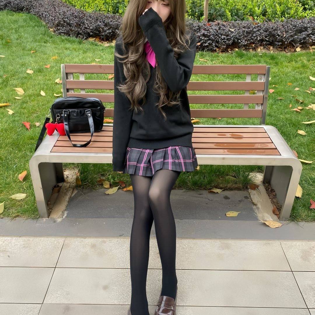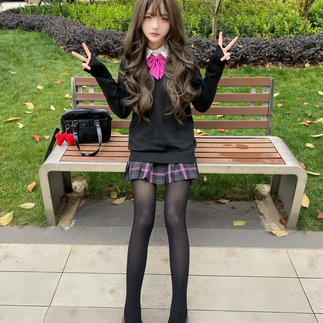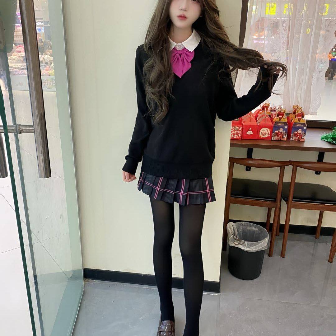 胖MM大码德兰西/k制服校供格裙长袖秋冬套头针织衫毛衣学院套装女