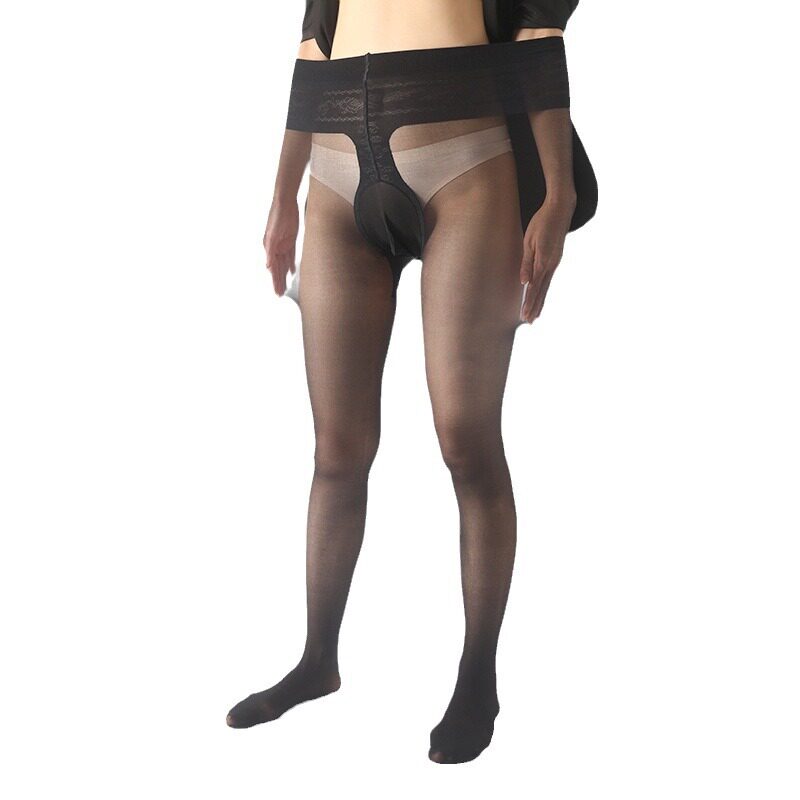 200斤T裆黑丝袜大码男士带JJ套连裤袜高腰天鹅绒超薄哑光丝袜加肥