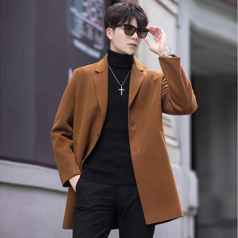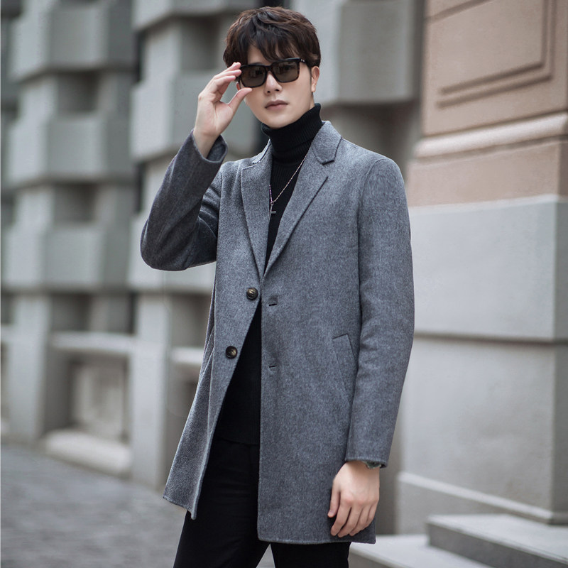 高端双面羊绒大衣男中长款秋冬加厚青年韩版羊毛风衣呢子冬季外套