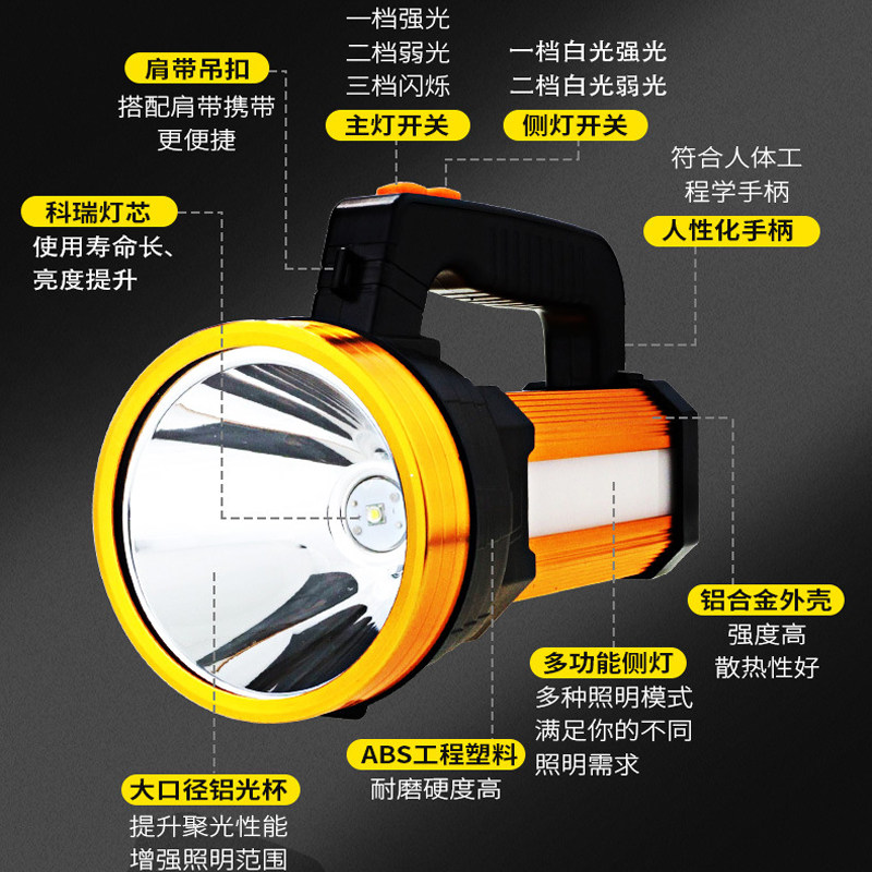探照灯强光户外露营工程专用超亮大功率远程防水led手提式手电筒