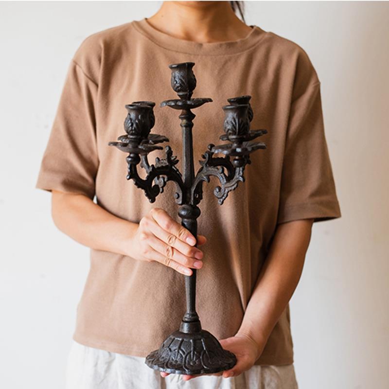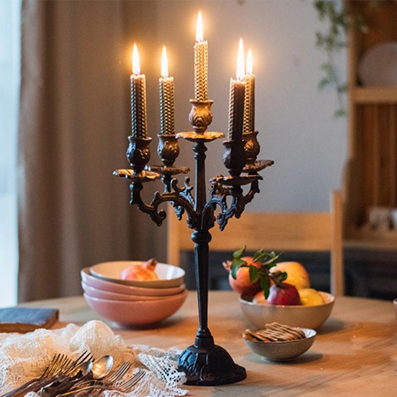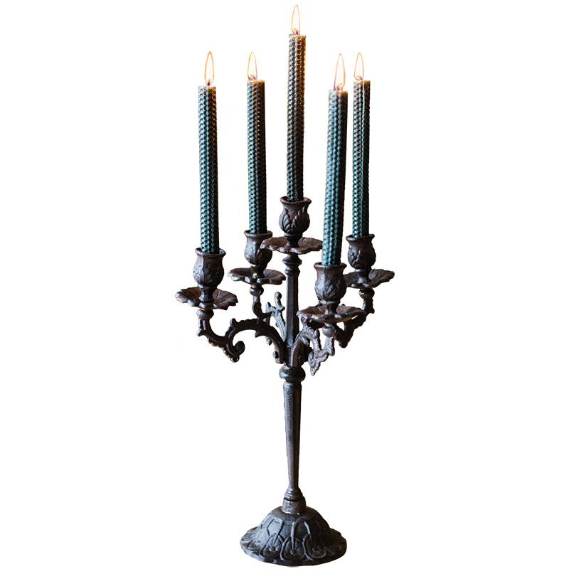 北欧复古铸铁蜡烛台餐桌摆件做旧铁艺烛台烛光晚餐浪漫灯场景道具