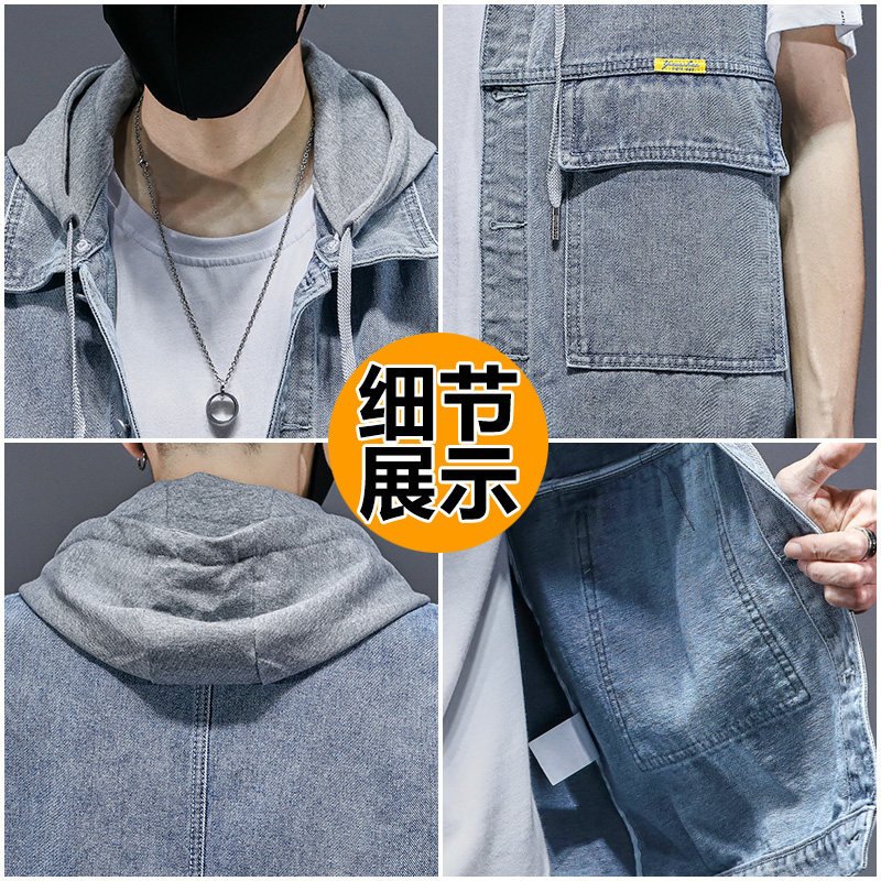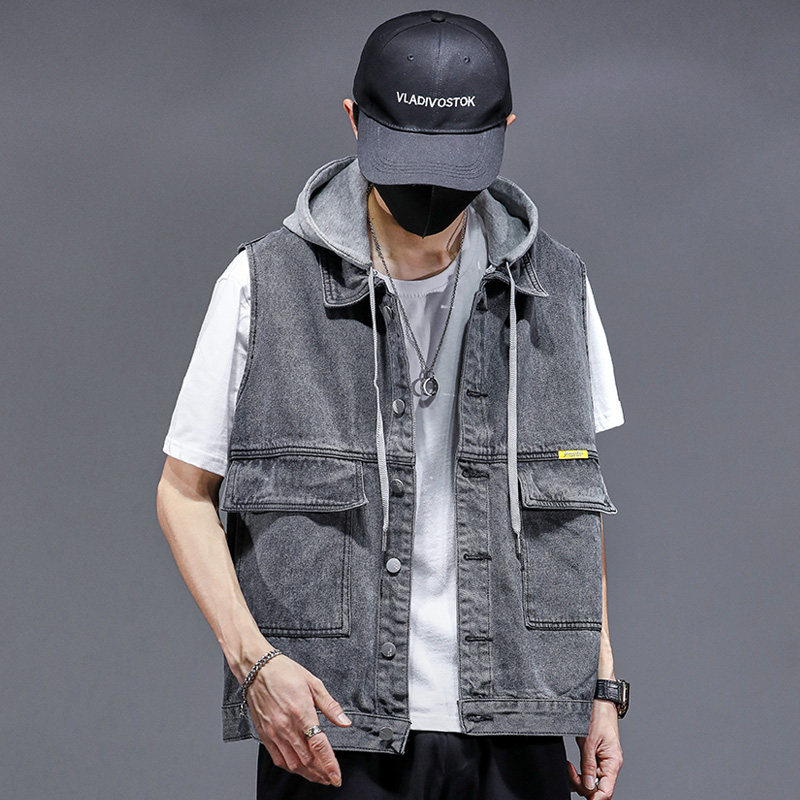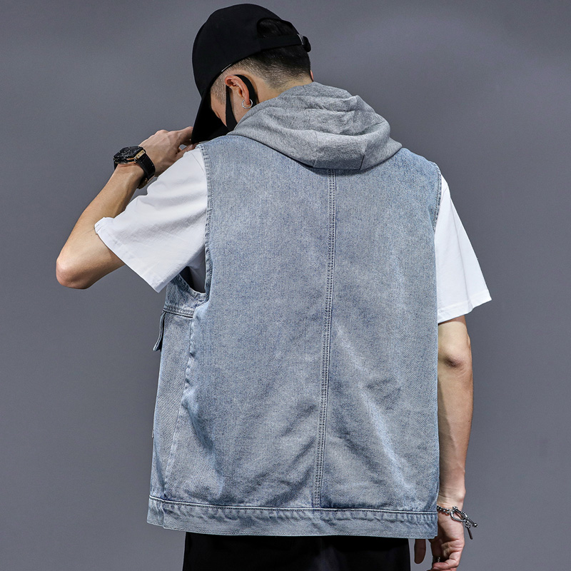 连帽牛仔马夹男春秋款潮牌宽松痞帅夹克秋季无袖工装背心马夹男潮