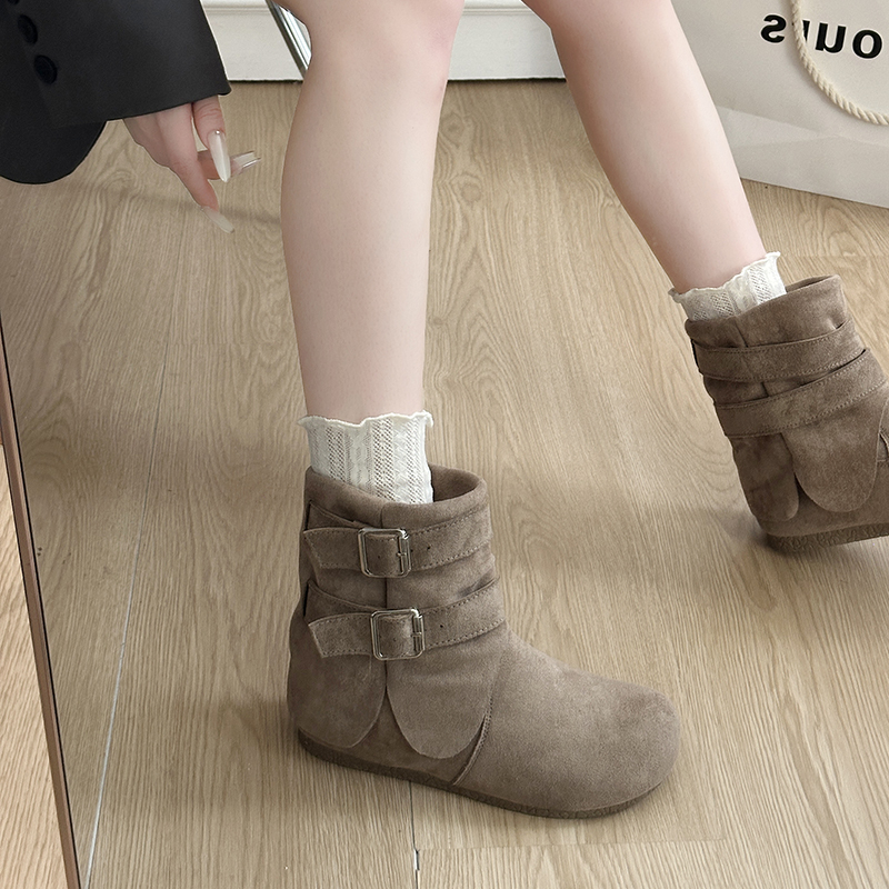 羊皮版复古美拉德网红爆款时装靴女2025秋季新款百搭平底圆头短靴
