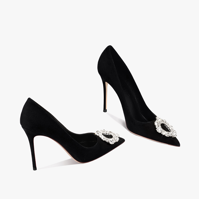 hltino法式细跟水钻尖头高跟鞋