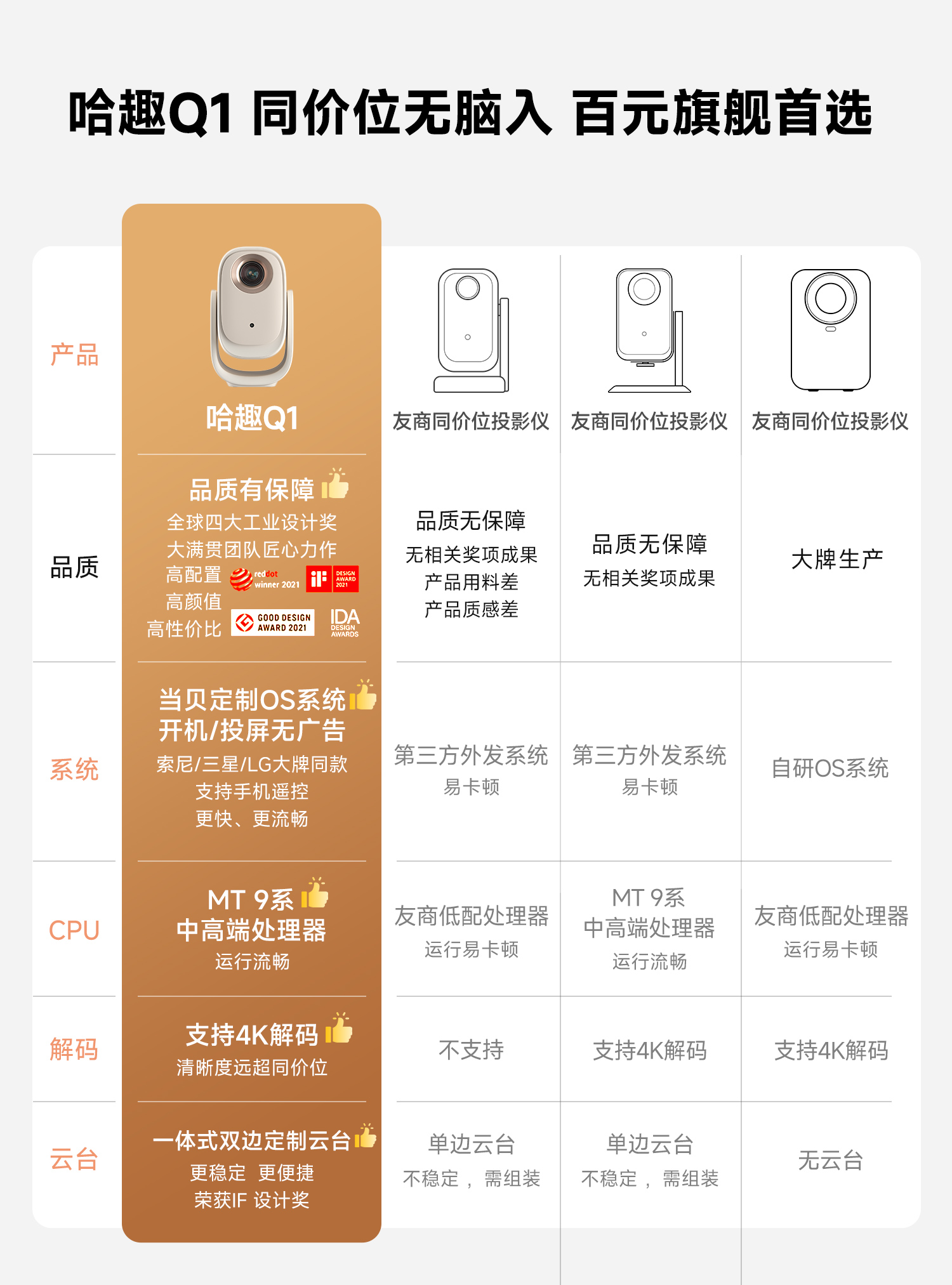 【政府补贴15%】哈趣Q1投影仪小型宿舍学生 家用超高清云台一体真1080P智能护眼卧室可投屏便携投影机4K解码