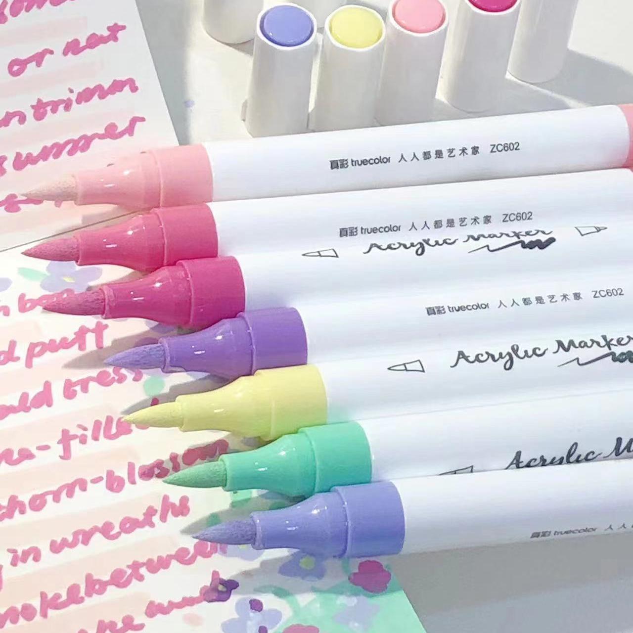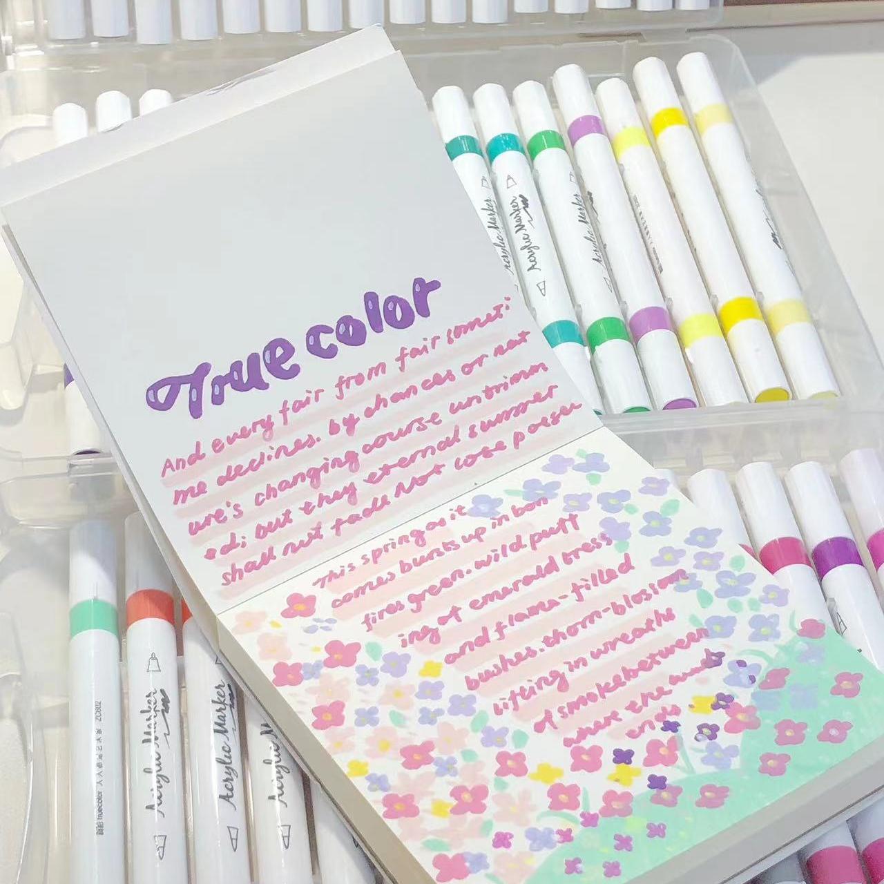 真彩丙烯马克笔软头双头儿童不透色可叠色画笔小红书同款小学生专用无毒可水洗防水手绘diy水彩笔24/48色套装