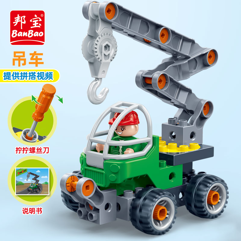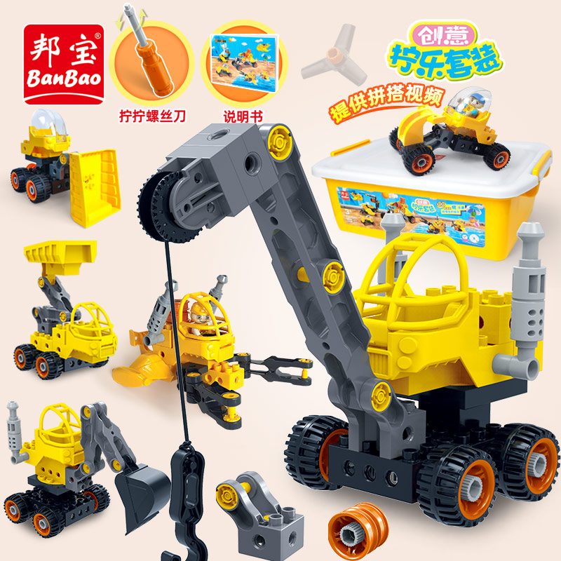 邦宝大颗粒工程车积木拼装挖掘机玩具拧螺丝刀儿童礼物6539