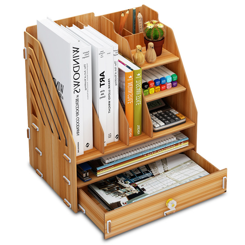 多层文件夹木质置物架办公桌面