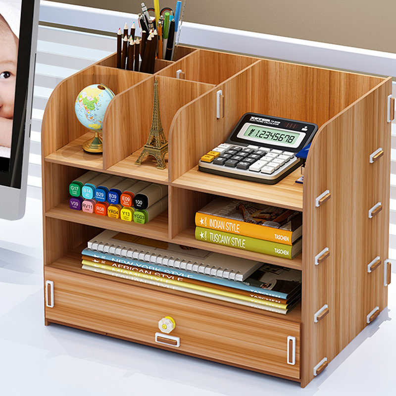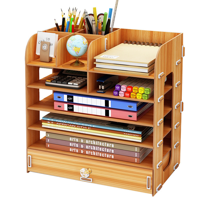 办公桌面收纳盒用品大号多层抽屉文件夹文具室木质储物书桌置物架