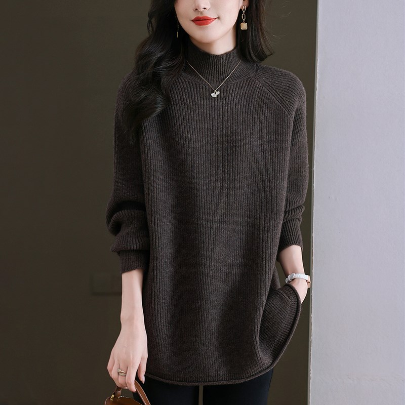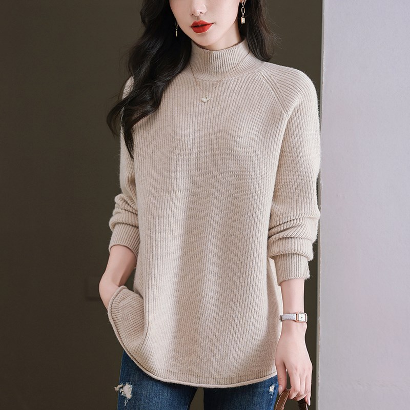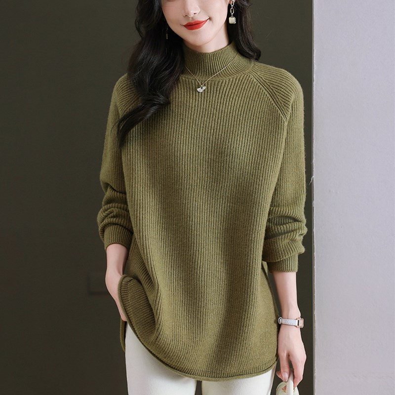 胖MM秋冬特大码半高领中长款毛衣女240斤宽松加肥遮肚羊毛打底衫
